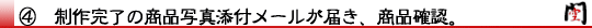 注文フォームからのご注文内容を受け取りしだい、制作完了予定日をメールでお知らせします。(制作完了予定日は、各ページ上部と左メニューの更新情報にてお知らせしております。)